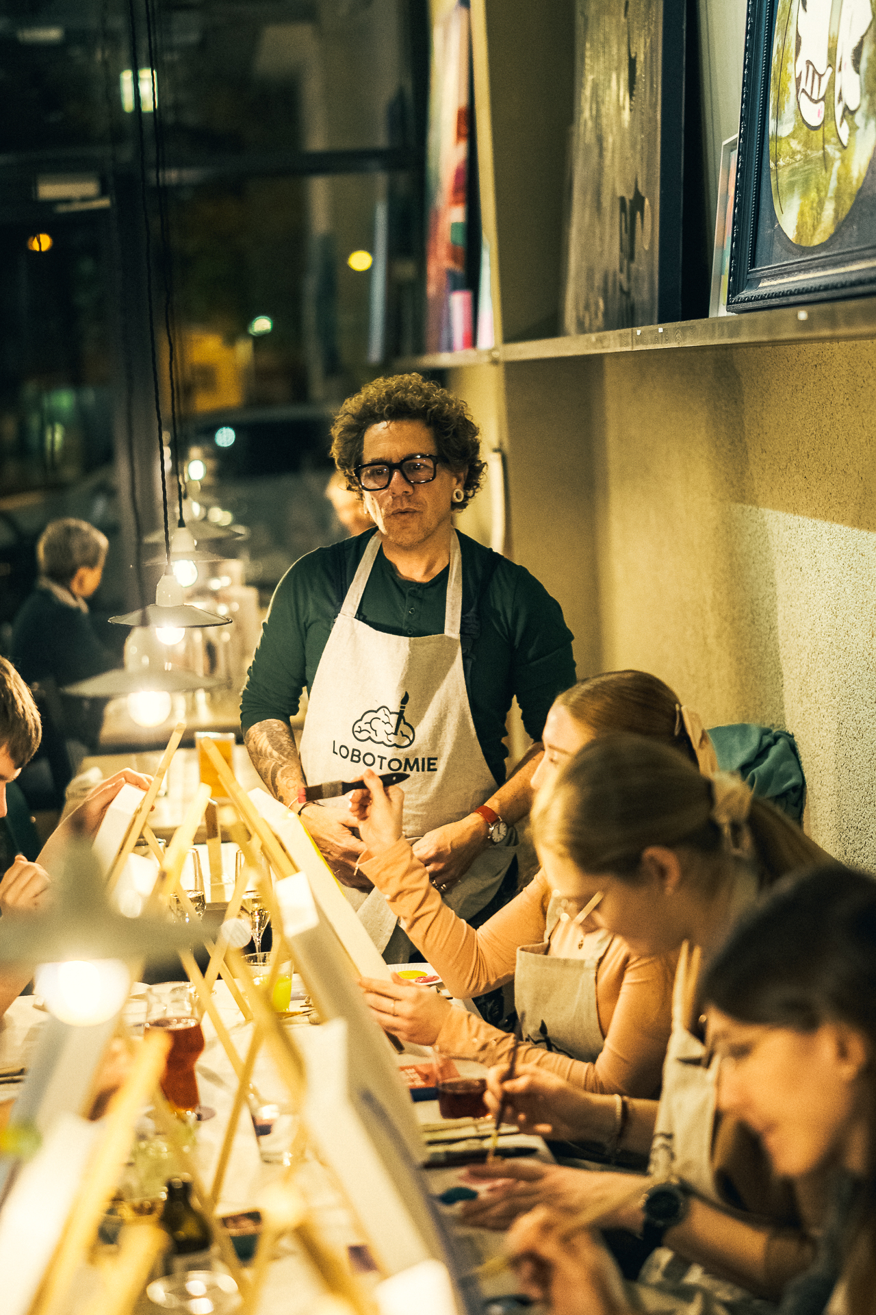 Disfrute de una velada creativa en "Lobotomy" con Mau Pavón, donde pintará su propia obra de arte mientras disfruta de música relajante y bebidas caseras, ¡todo por sólo 55 CHF por persona!